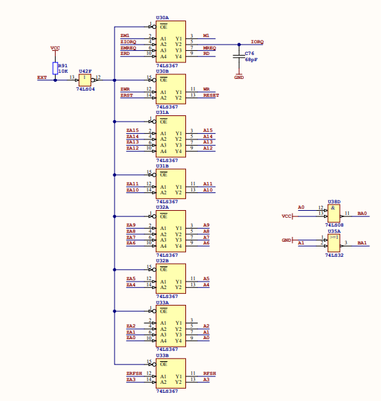 Esse circuito é utilizado para aumentar a capacidade do Z80 de fornecer sinal para os outros circuitos integrados conhecido como FAN-OUT, que é o número máximo de portas lógicas que podem ser alimentadas por um sinal.