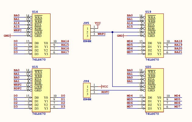 Note que os sinais das linhas de endereço A0 e A1, por terem muitas conexões internas, são amplificados por outras duas portas lógicas separadas das normais do BUFFER.