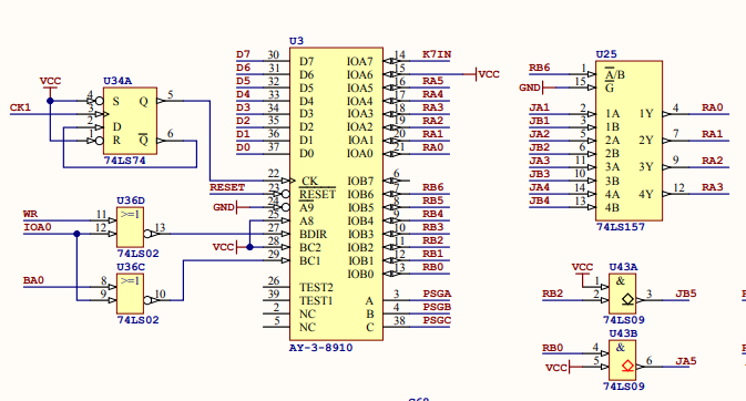 São três canais de sons com timbres variados, 8 oitavas e um canal de ruído branco, para efeitos sonoros, também é responsável pelo controle dos Joysticks e leitura do sinal de áudio da entrada de fita K7.